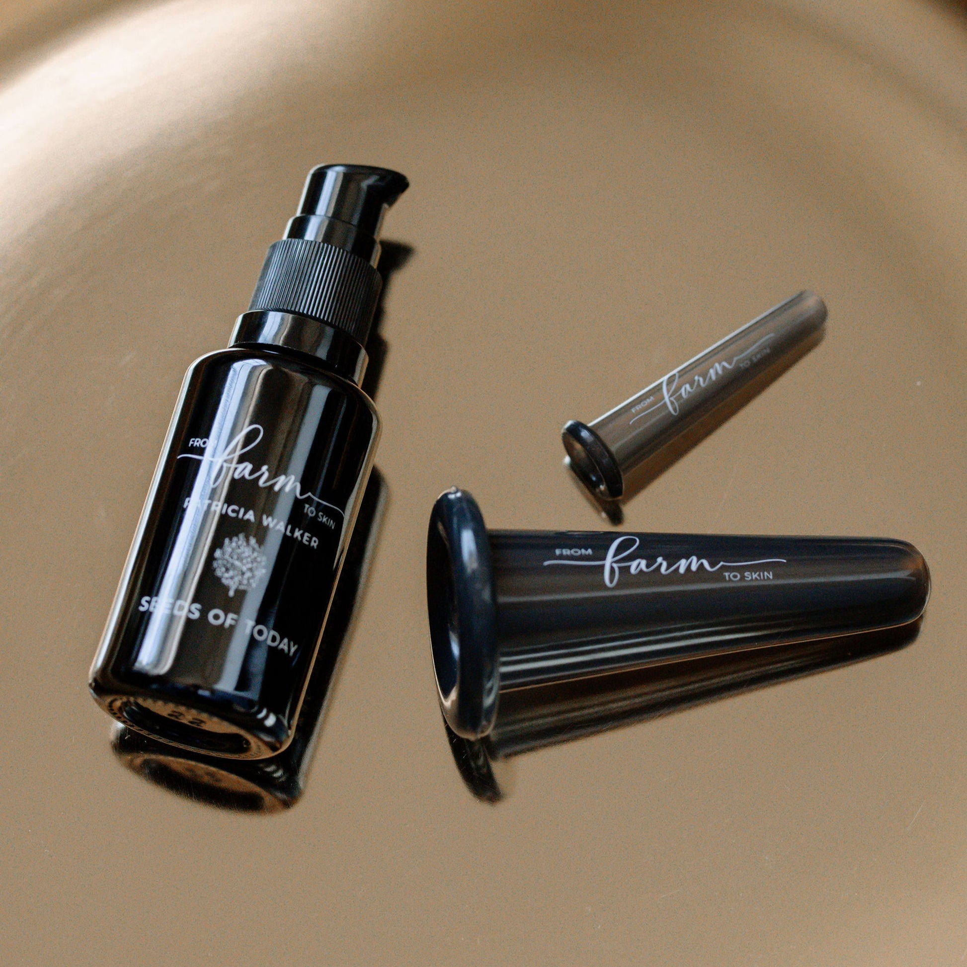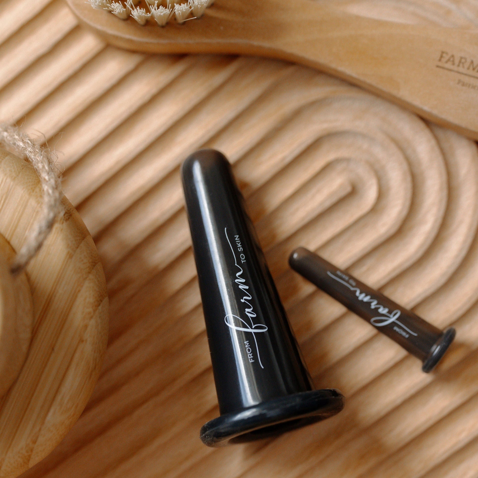 Elevate your skincare ritual with the Farm to Skin Facial Cupping Tool. Designed to naturally tone, lift, and revitalize your skin. These high-quality silicone cups are crafted to gently stimulate circulation, promote lymphatic drainage, and enhance the absorption of your favorite serums and oils. With regular use, this technique is shown to reduce puffiness, appearance of wrinkles, and improve overall complexion - naturally!